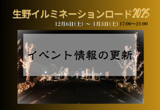 冬の生野のまちをやさしく包み込む恒例イベント「生野イルミネーションロード2025」を今年も開催します。 生野マインホール周辺の建物や街路樹など、約500mの区間に5万個のイルミネーションが灯り、歴史ある鉱山町・生野の夜...