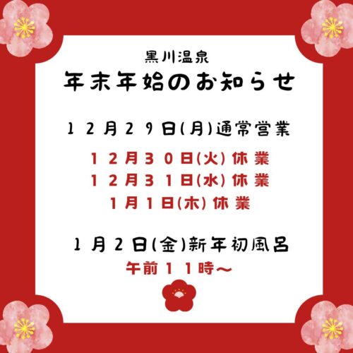 2025年~年内および年末年始の営業についてのお知らせ~